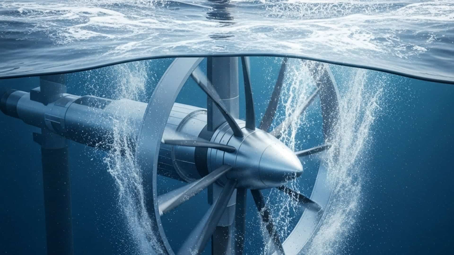 La segunda forma de producir electricidad aprovechando la energía de las mareas se asemeja mucho a lo que hacemos con nuestros aerogeneradores. Se colocan turbinas marinas directamente en las zonas donde las corrientes de marea son fuertes y constantes. Este flujo continuo presiona las palas de la turbina e induce el movimiento giratorio en un generador eléctrico.