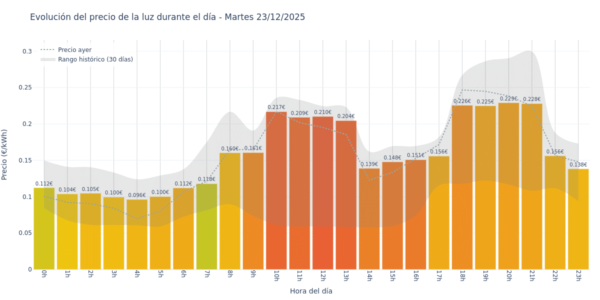 Precios actualizados a 23/12/2025 07:00 | Tarifa PVPC Martes 23 de diciembre de 2025