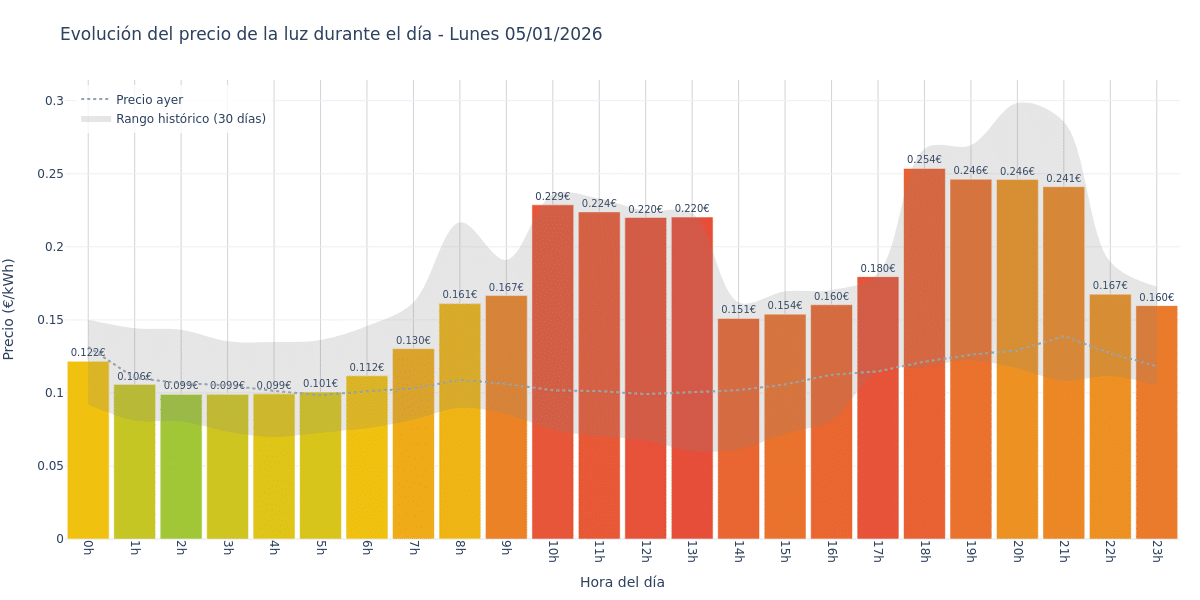 Precios actualizados a 05/01/2026 07:00 | Tarifa PVPC Lunes 5 de enero de 2026