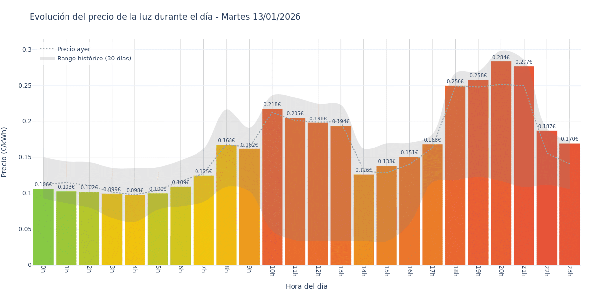 Precios actualizados a 13/01/2026 07:00 | Tarifa PVPC Martes 13 de enero de 2026