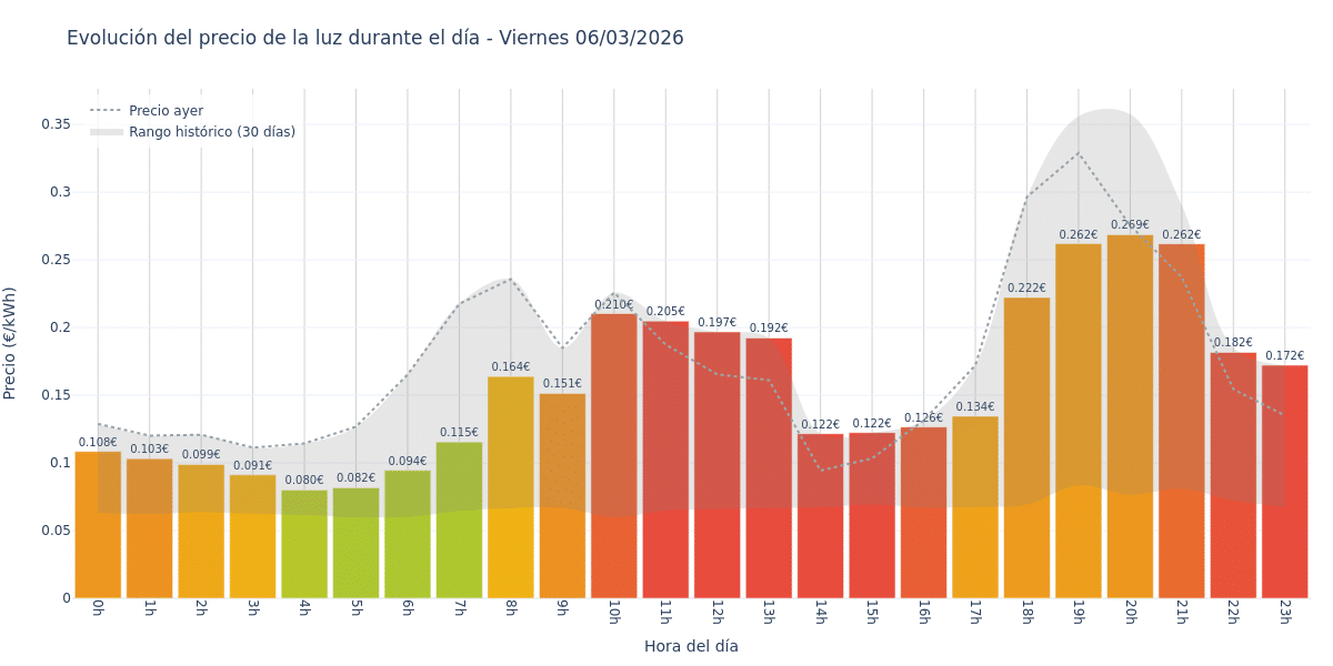 Precios actualizados a 06/03/2026 07:00 | Tarifa PVPC Viernes 6 de marzo de 2026